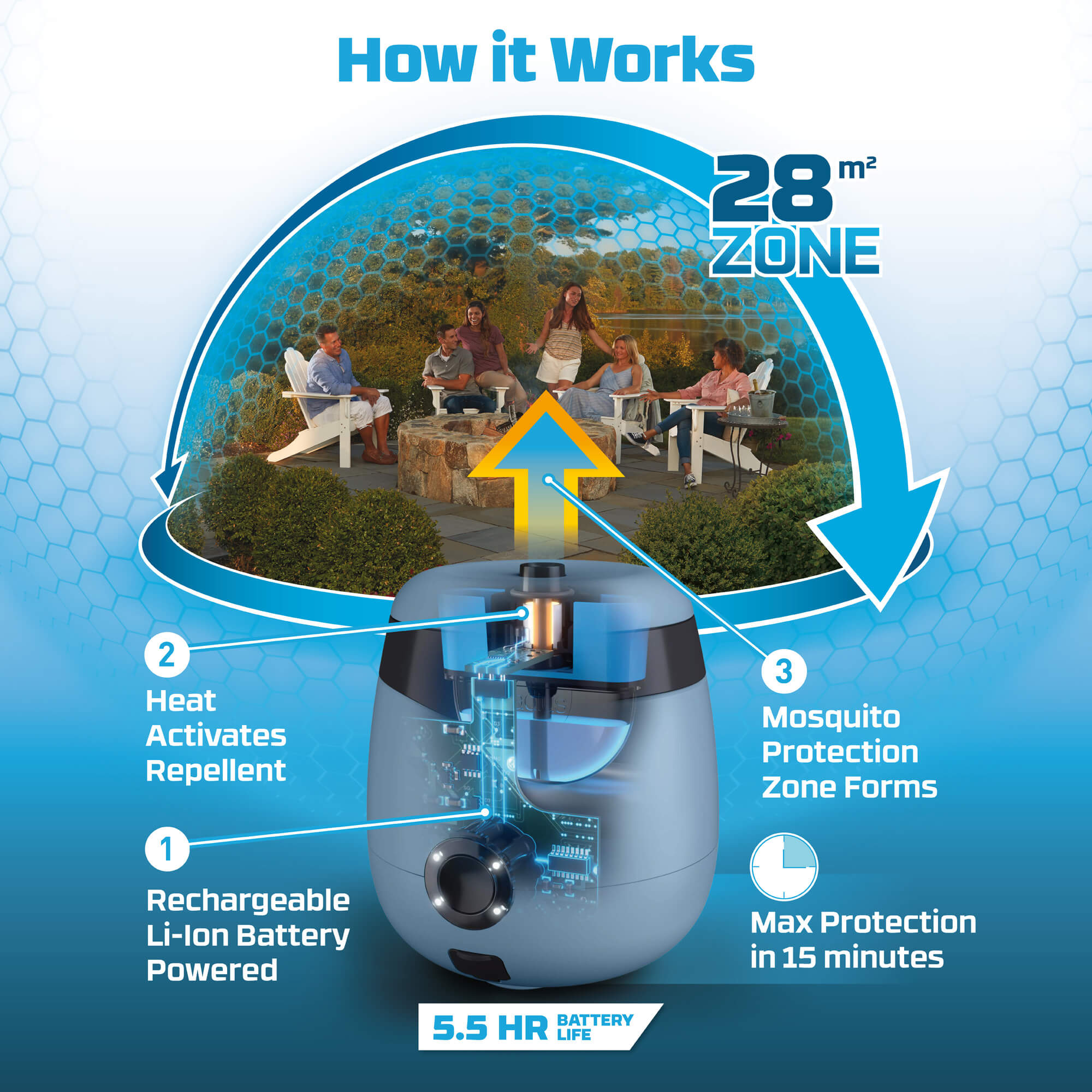 This easy-to-use device provides up to 5.5 hours of continuous protection per charge, with the ability to charge while in use for extended run time. Designed with LED indicators and audio cues, it keeps you informed about your battery life and protection status, so you can enjoy worry-free outdoor experiences.